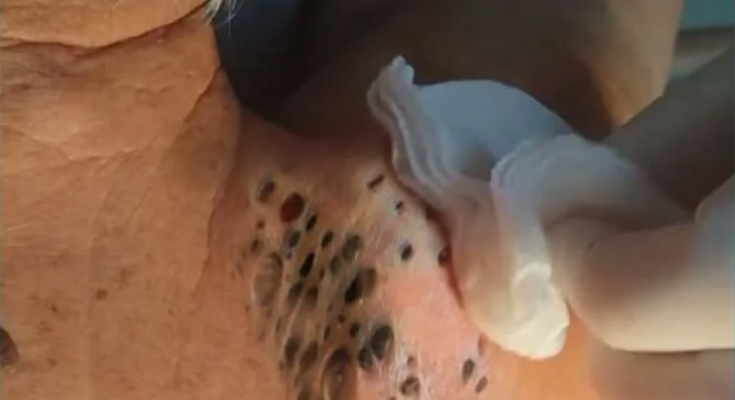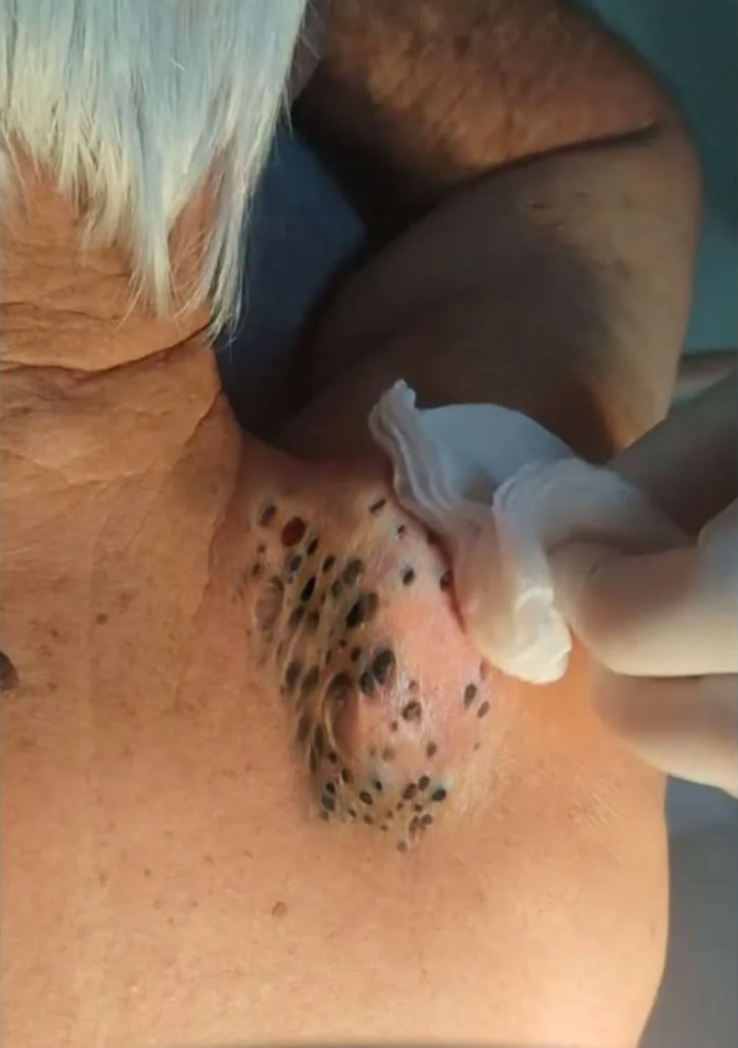 Skin concerns such as blackheads can sometimes appear in unusual clusters, causing discomfort and affecting appearance. In the image above, we see a patient receiving treatment for multiple blackheads located on the shoulder area. This type of condition may look alarming, but with proper care and medical guidance, it can be managed effectively.