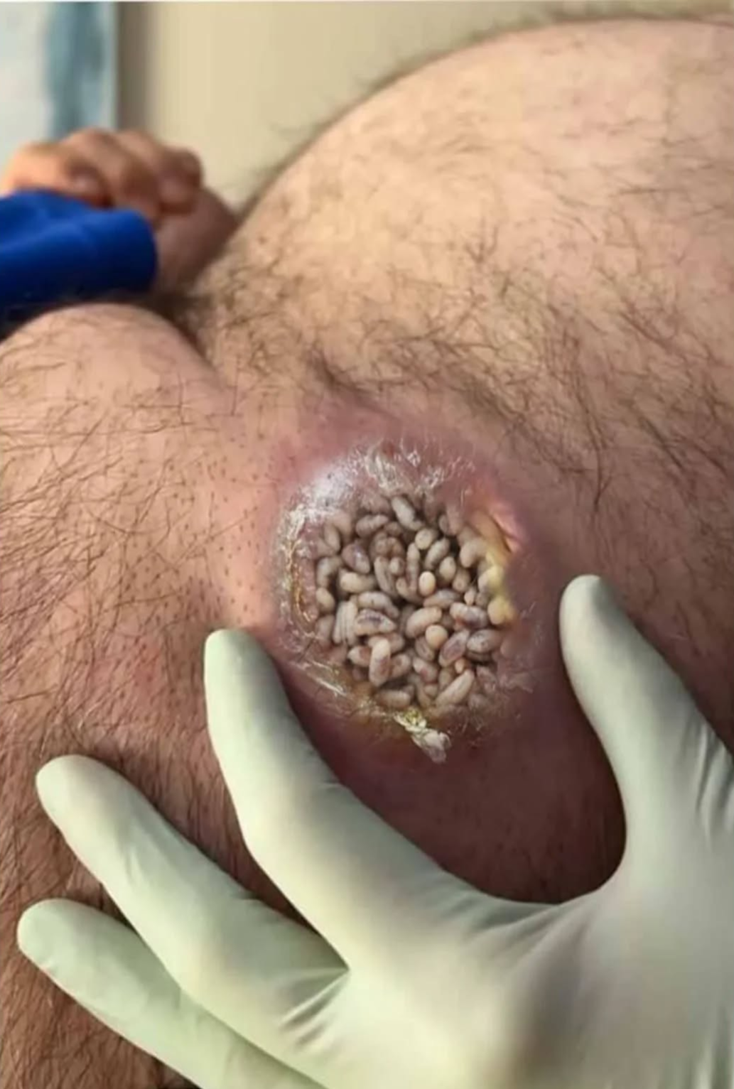 Myiasis is not only a disturbing and painful condition but also a serious medical emergency. While maggots are sometimes used in controlled medical settings to clean wounds (a therapy known as maggot debridement therapy), uncontrolled infestations like the one shown in the image are extremely dangerous.