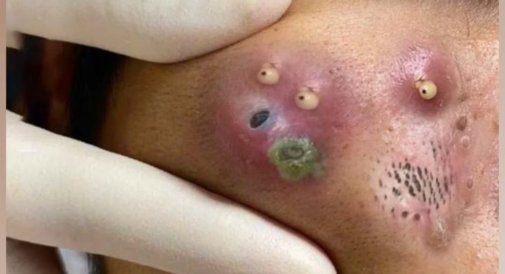 Skin abscesses and severe pimples on the face are not just cosmetic concerns — they are signs of deeper skin infections that can become painful and potentially dangerous if left untreated. The image above captures a severe case of multiple abscesses forming on the cheek, each filled with pus and surrounded by inflamed, swollen skin. It serves as a vivid example of how bacterial infections can progress beneath the surface, leading to painful lumps that require medical attention and professional extraction.