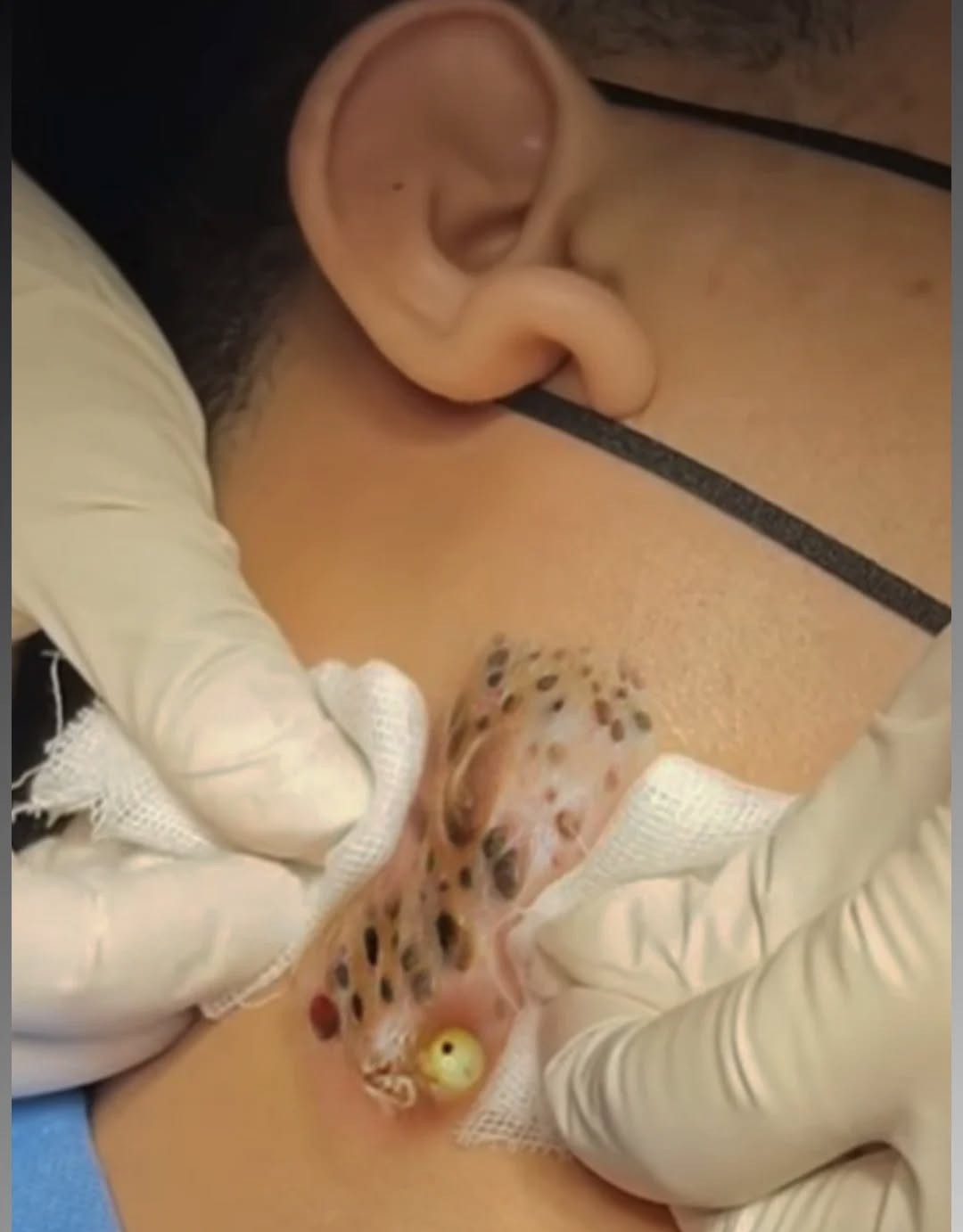 A facial abscess is a localized collection of pus that develops beneath the skin due to bacterial infection. It often appears as a swollen, painful lump filled with fluid, and can occur anywhere on the body — but when it forms on the face, it becomes both a medical and cosmetic concern. The image above shows a clinical extraction of a facial abscess near the jawline, where professional care is essential to prevent complications and scarring.