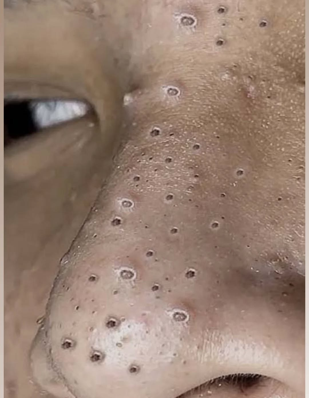 The image above captures a close-up view of a professional blackhead extraction procedure. Each dark pore seen on the skin’s surface represents a successfully cleaned follicle where trapped oil and debris have been removed. This process helps clear out impurities that normal washing or exfoliation cannot reach.