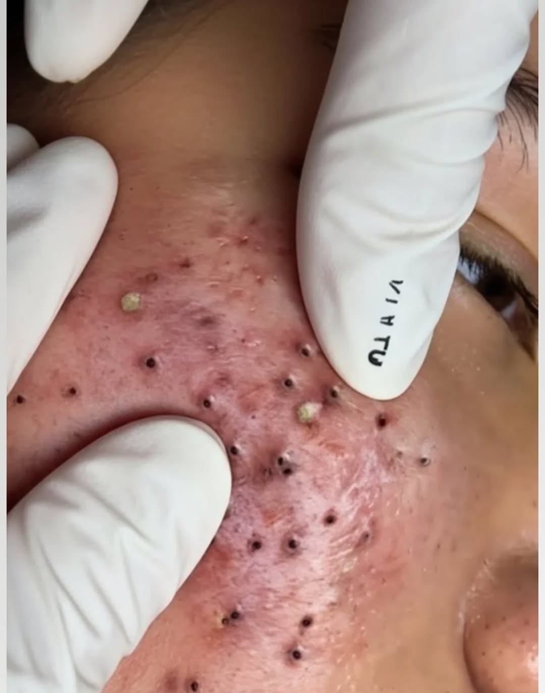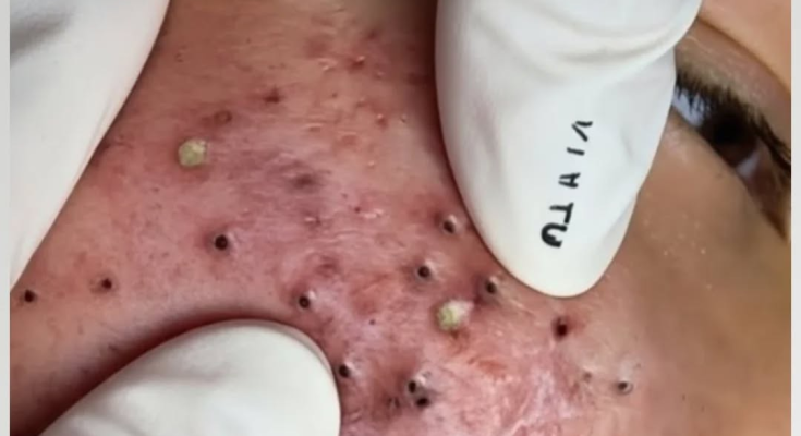 Blackheads and pustules are among the most common skin concerns faced by people of all ages. The image above illustrates a close-up view of a skin extraction process performed by a professional. It shows a series of deep blackheads and pus-filled pustules being carefully removed using gloved fingers — a common procedure in dermatological treatments and advanced facials. While it may appear intense, this process plays a crucial role in restoring healthy, clear skin when performed correctly.