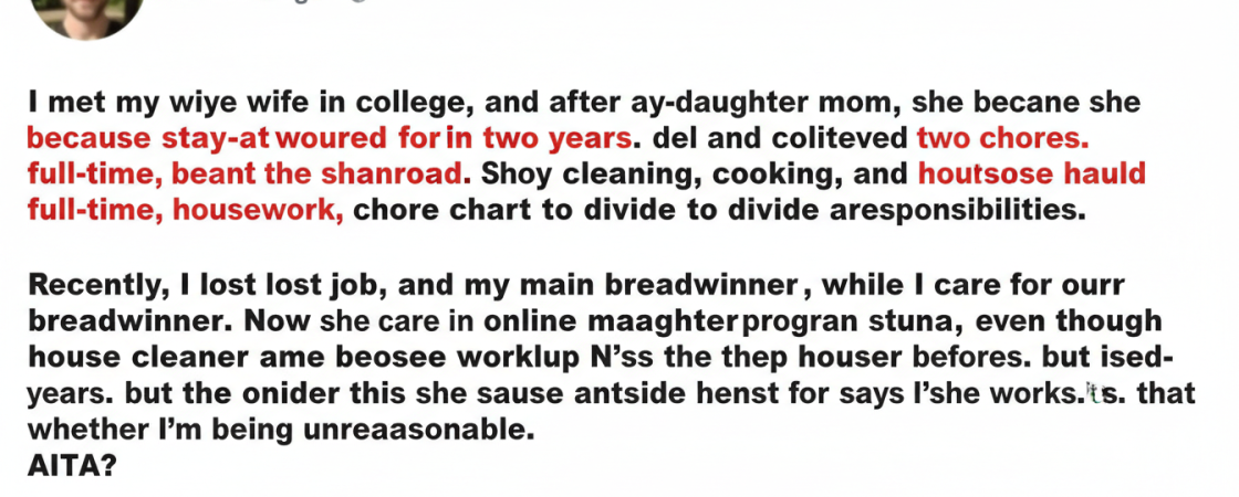 She claims I am being unfair, since I refuse to change the chore chart because it is literally what I have done for two years.