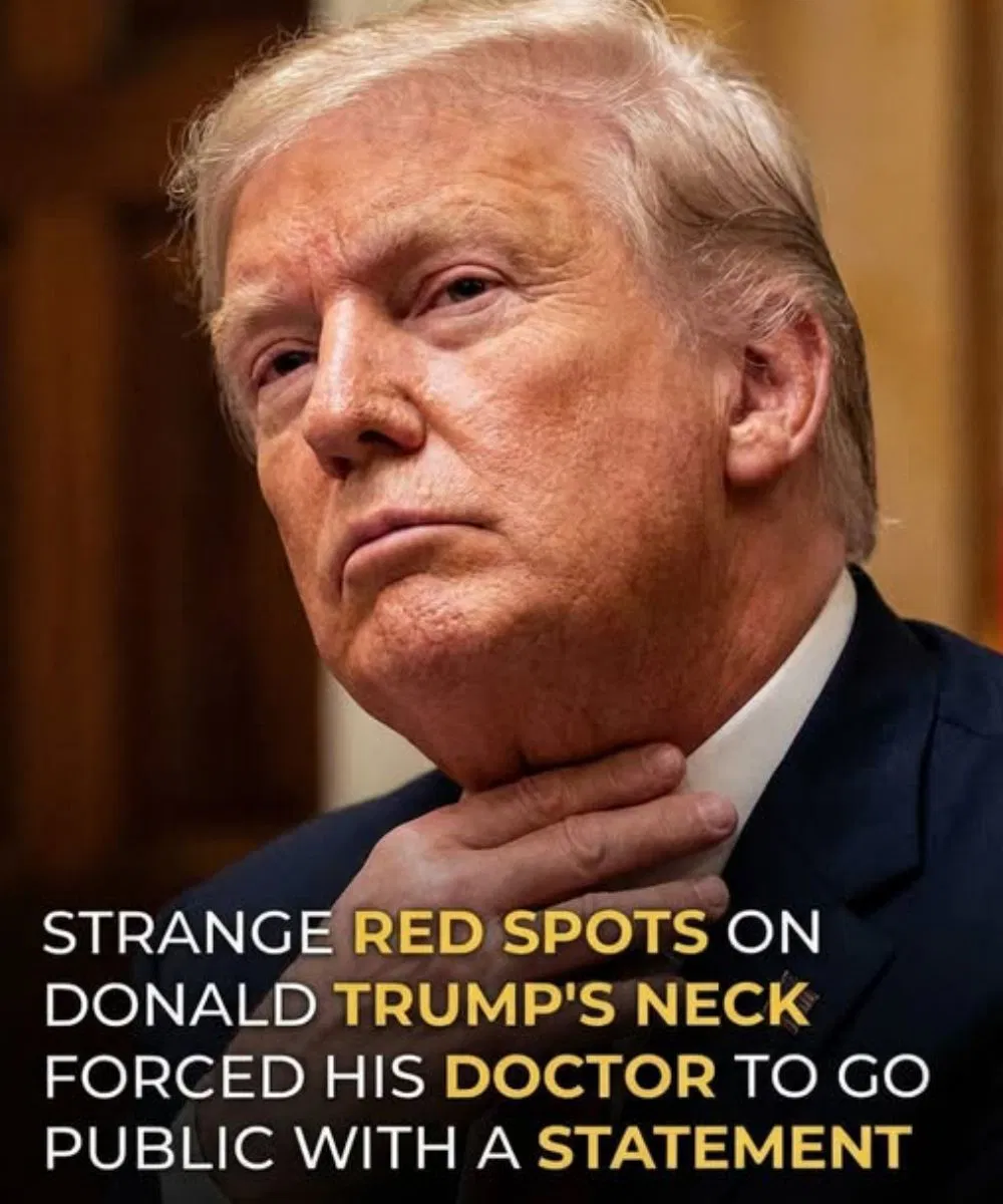What started as a routine event at the White House soon generated significant attention online after viewers began noticing small details in President Donald Trump’s appearance. Photographs from the ceremony appeared to show a mark near his neck along with discoloration on his hand, prompting many people on social media to question whether it might indicate a health concern. In today’s digital environment, even subtle physical changes in public figures can quickly attract widespread scrutiny.