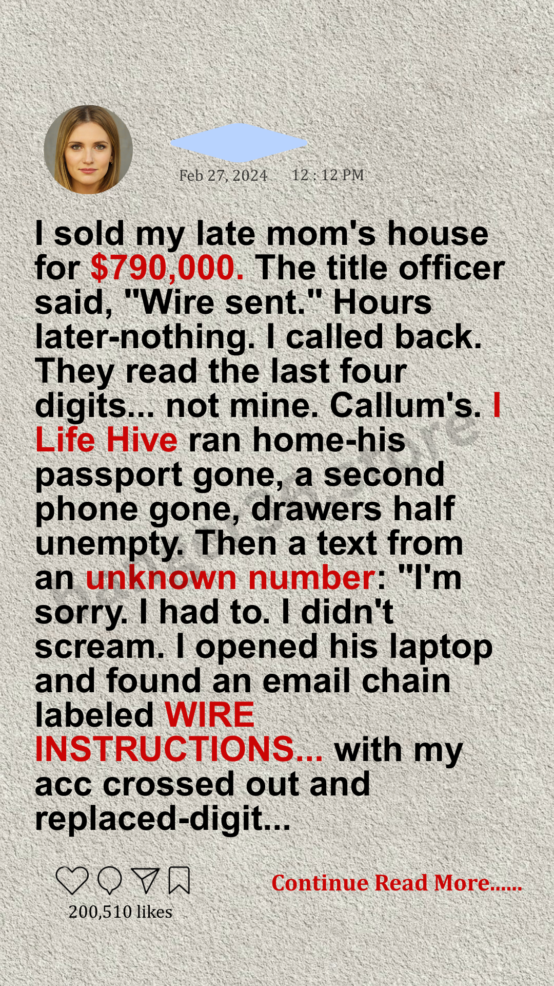 When the title officer said, “The wire instructions are confrmed,” I simply nodded, barely listening throu