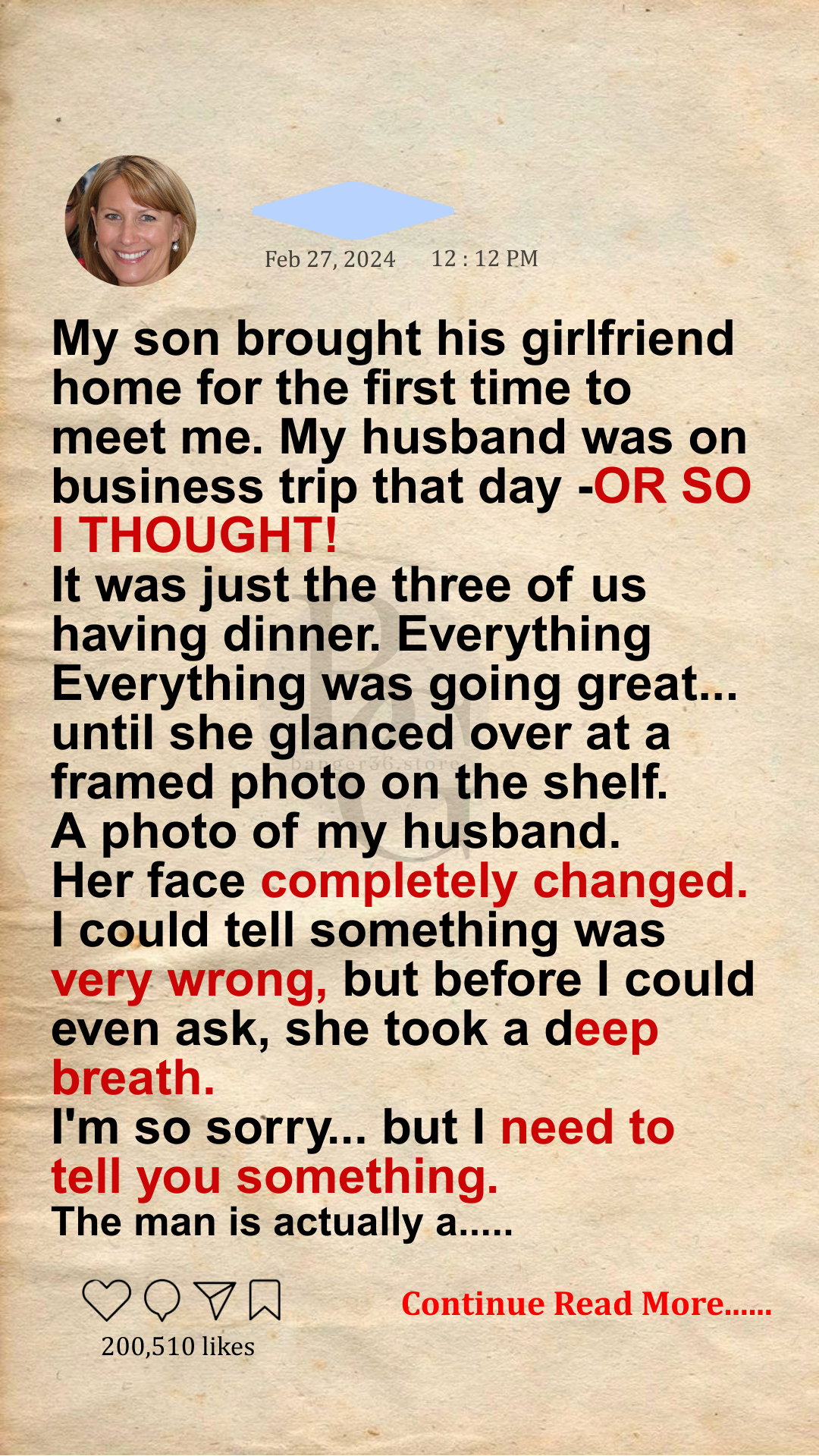 My husband, Mark, was away on what he said was a three-day business trip in Chicago. He traveled often for work, so it wasn’t unusual. Still, I wished he could have been there to meet Ryan’s girlfriend too.