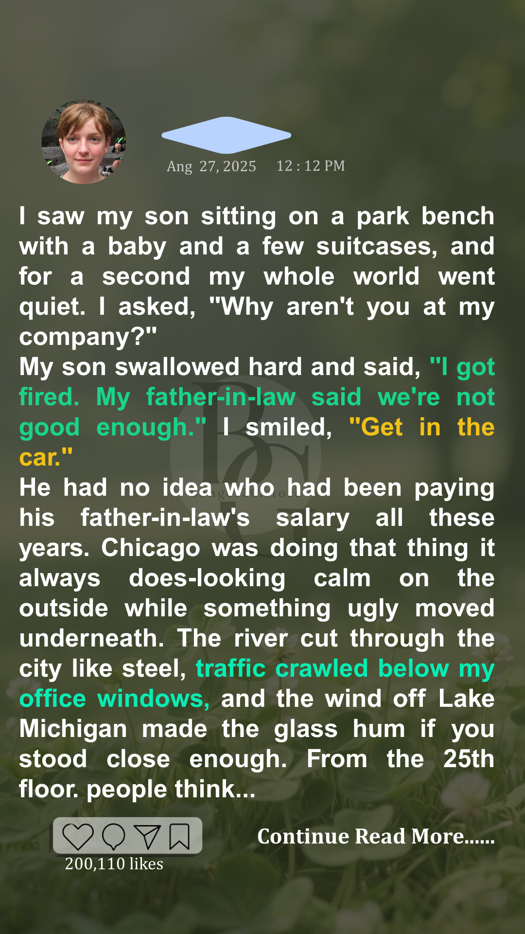 He lowered his head. “I was fired. My father-in-law said our blood doesn’t match his. Said I’m bad for the