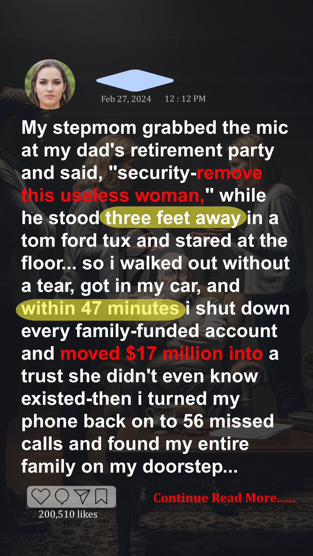 Within forty-seven minutes, Laura legally transferred $17 million in segregated trust funds into a trust her stepmother didn’t even know existed. The rest of the family trust, which Diane had been using as if it were hers, immediately fell below its required collateral threshold. Accounts froze. Cards stopped working. The illusion of control Diane had built for years began collapsing in real time.