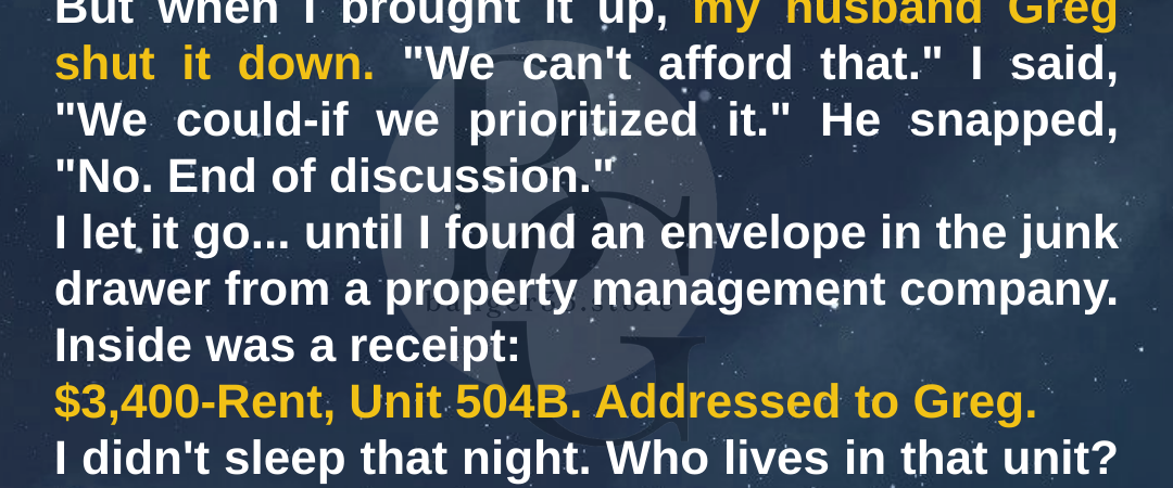 As he turned to leave, I called after him, “And Greg? If you ever lie to me again about anything… money, your mother, or where you’ve been… there won’t be another chance. Some leases can’t be renewed once they’re broken.”