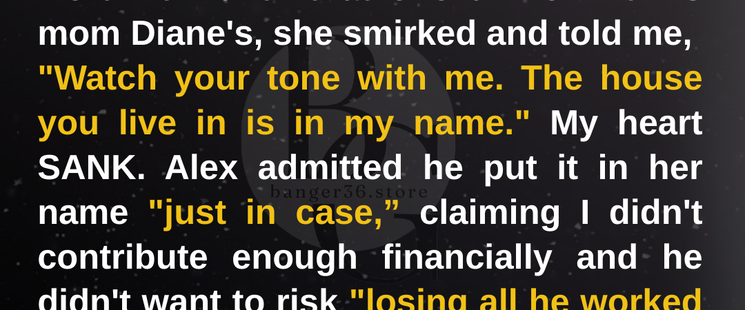 “Oh,” Diane continued, feigning surprise. “You didn’t know? The house — the one you live in with my son — IT’S MINE. Alex put it in my name when you bought it. He said it was safer that way because you barely contribute anything to the household! Didn’t he tell you?”