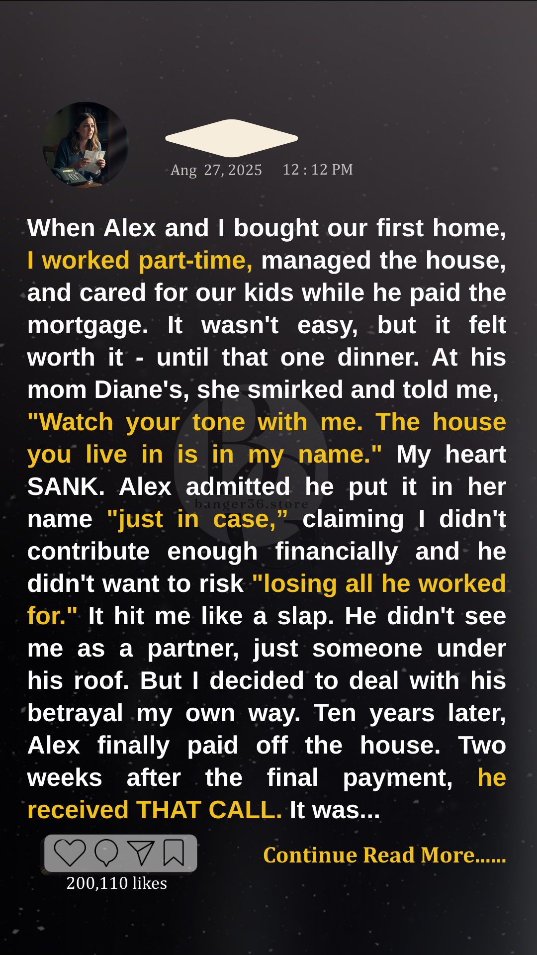“You know,” she interrupted, leaning back in her chair with that smug look on her face, “you should really watch your tone with me. After all, this house is in MY NAME. Without me, you’d have NOTHING!”