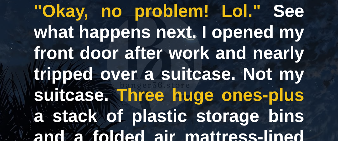 Then I walked out the door for work, leaving three suitcases, a shocked husband, and an entire family realizing they had picked the wrong house to treat like a free hotel.