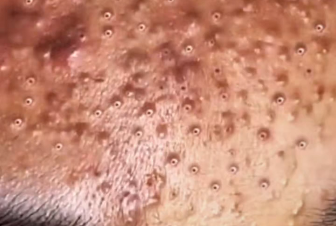 In severe cases like this, multiple pores become blocked simultaneously, creating a rough, uneven texture across the skin.