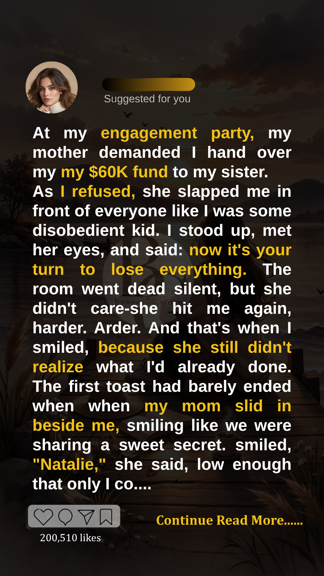 The first toast had barely ended when my mom slid next to me, wearing that fake smile she saves for public events.