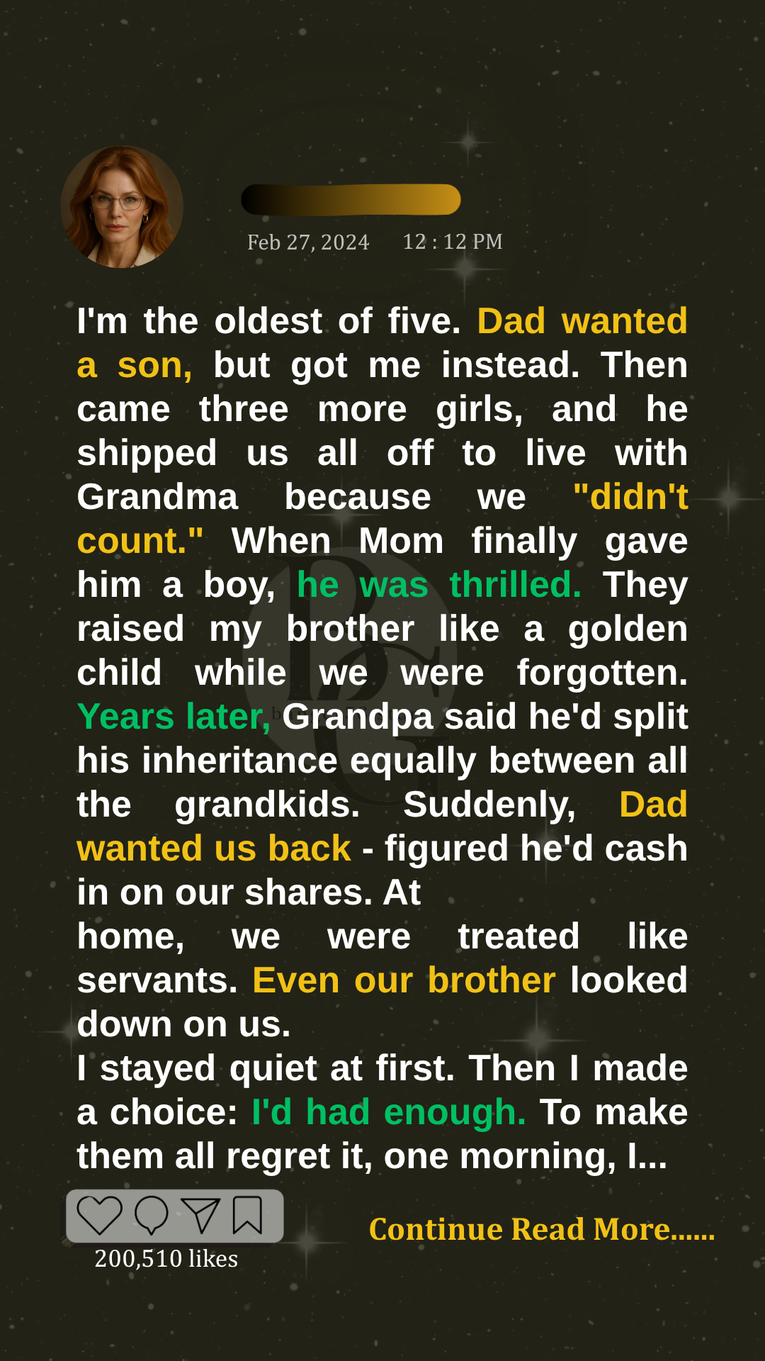 Dad wanted a son and never hid it. He told Mom right after I was born, apparently, in the hospital, “Don’t get too attached. We’ll try again.” He never said it in front of us, but you could feel it in everything he didn’t say. No hugs, no “I’m proud of you,” just silence and cold stares.
