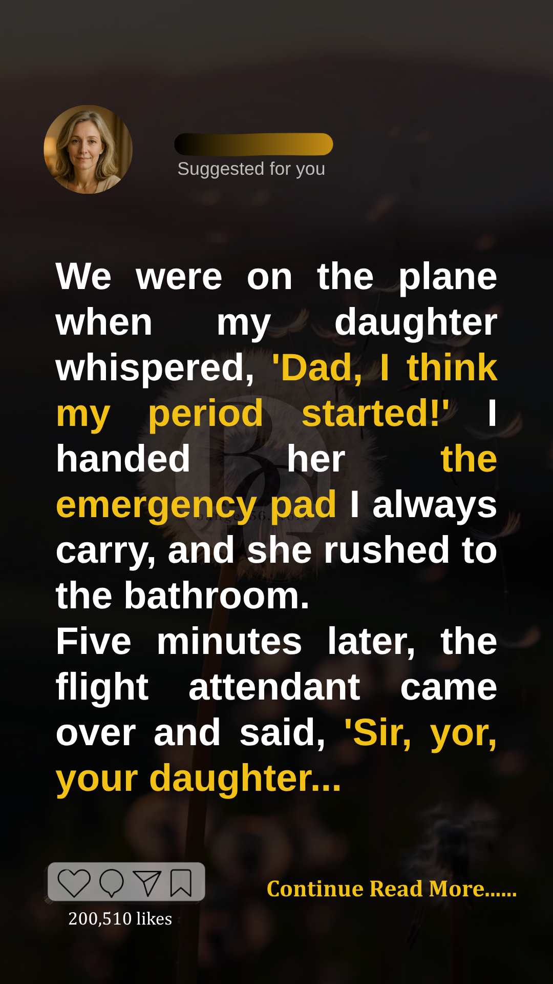 I stood up immediately and followed her down the narrow aisle of the plane. My mind was racing. It was her first period, and I knew she was already embarrassed about it. The last thing I wanted was for her to feel alone.