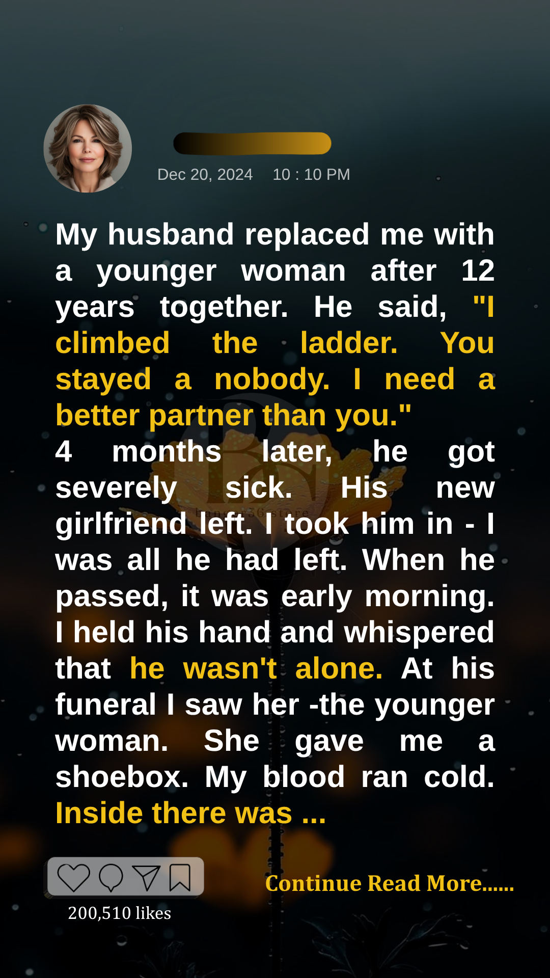 He wasn’t the man who had left me. He was smaller, quieter, diminished. The confidence that once commanded attention was gone, replaced by someone afraid of dying alone. Sometimes he tried to speak apologies, but the words faltered. I didn’t need them—I had learned that love doesn’t always require explanations.