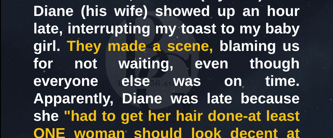 “Oh, don’t mind us,” Diane announced loudly, waving as all eyes turned to them. “We’re late because I had to get my hair done. I thought at least one woman should look decent at this party.”