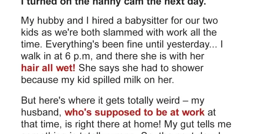Not even an hour later, I checked the camera and saw MY HUSBAND, who’d left for work, walking in the door. My heart just dropped when he approached our nanny.