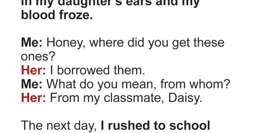 I managed to steady my voice, though my hands were still trembling. “Honey,” I began, trying to sound calm, “where did you get those earrings?” Mia looked up, her eyes wide and innocent, oblivious to the storm of emotions swirling inside me.