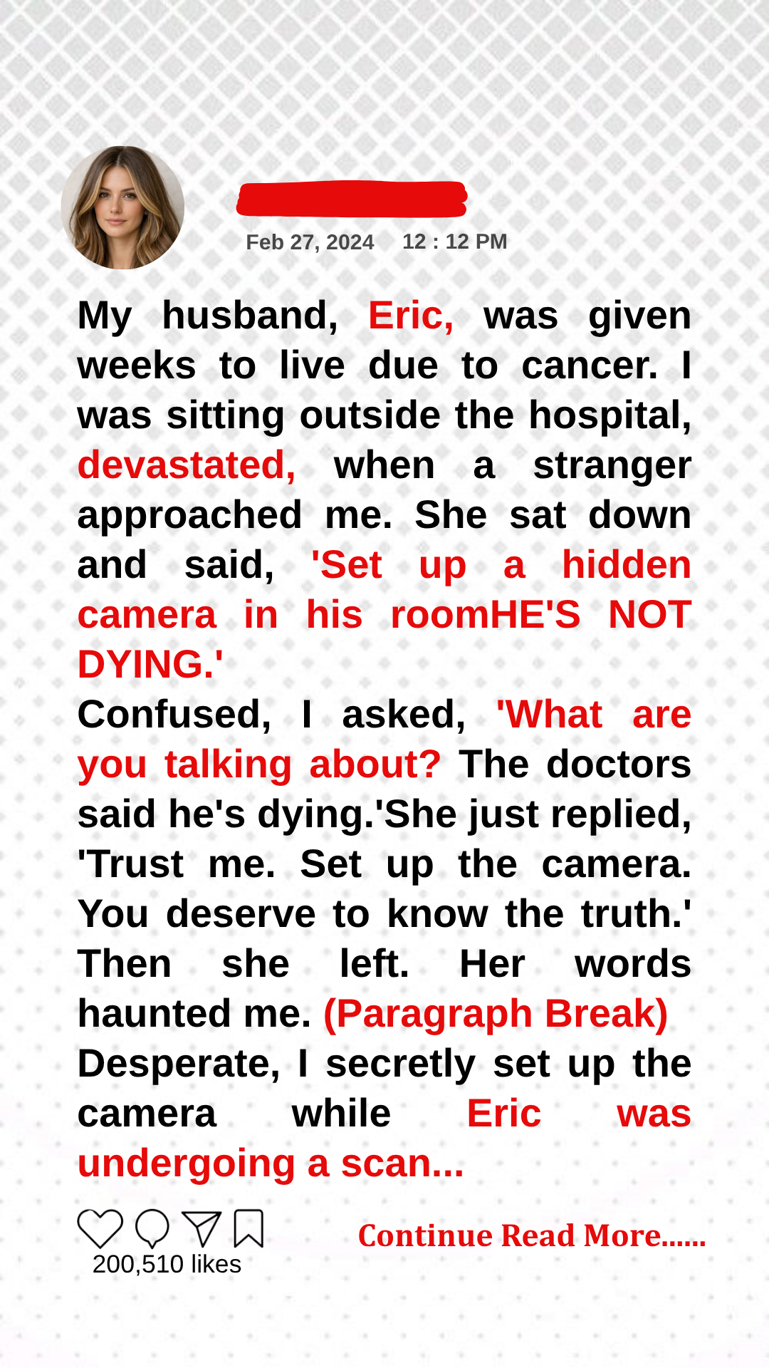 Her words haunted me. Desperate, I secretly set up the camera while Eric was undergoing a scan.