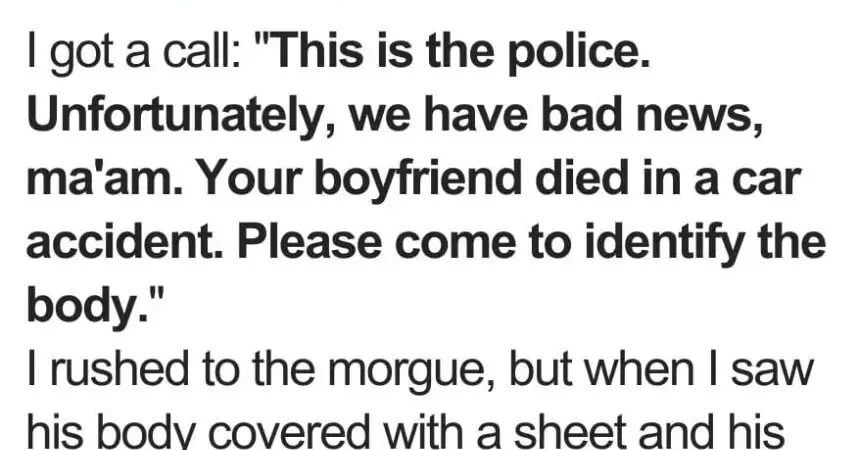 “I’m sorry to inform you, but Trevor has been in a fatal accident. We need you to come to the city morgue to confirm the identity.”
