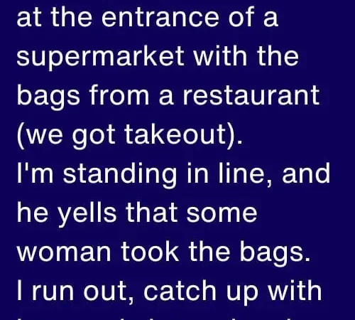 A woman was walking away from the entrance holding our takeout bags like they belonged to her. She didn’t look rushed. She didn’t look nervous. She was calm, almost casual, as if she had just picked up her own food and was heading to her car.