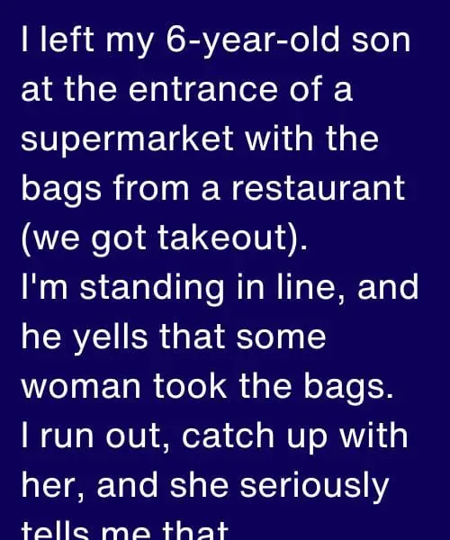 I left my six-year-old son standing near the entrance of the supermarket, holding two takeout bags we had just picked up from a restaurant nearby. It was supposed to be quick—just a fast stop to grab a few groceries before heading home. He was tired, I was tired, and I figured it would be harmless for him to wait right by the doors where I could still see him.