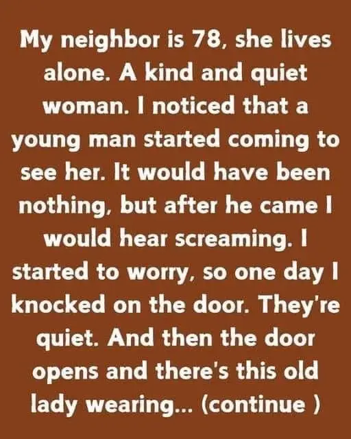 My neighbor is 78 years old and lives alone. A kind and peaceful woman.