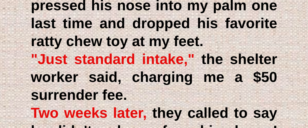 My mind raced back to the shelter. “Just standard intake,” the worker had said. I replayed the memory, focusing on the details I had been too distracted by my own guilt to notice then. The way the worker had looked at the golden retriever—not with pity, but with a cold, calculating recognition. The quick, almost frantic ushering into the back room. The phone call two weeks later, delivered in a clipped, emotionless tone.
