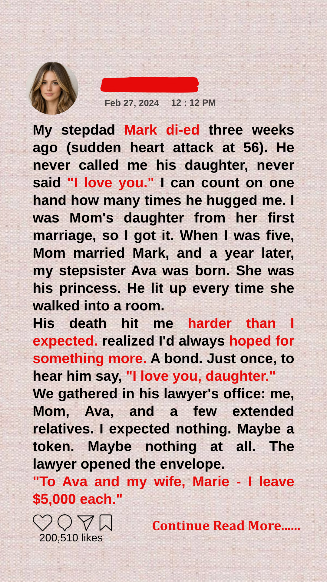 When I walked into a room, Mark would give me a nod. Sometimes a brief “Hey.” That was it. No hugs. No warm conversations. No proud smiles. I wasn’t his daughter. I was just Lucy—someone living in his home.