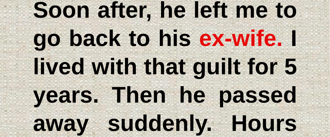 Now, standing across from the woman he married after me, I could feel that same old guilt crawling up my throat, thick and suffocating.