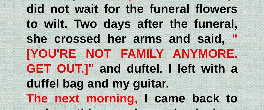 “She kicked me out two days ago,” I continued. “She told me I wasn’t family anymore.”