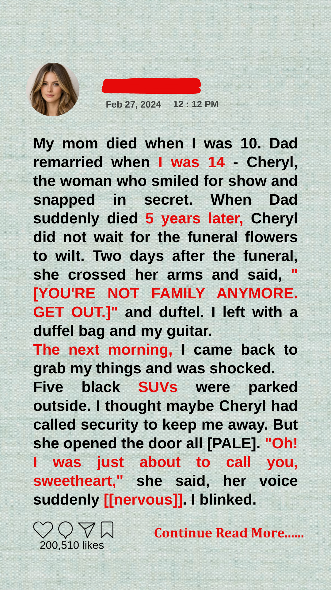 Cheryl let out a nervous laugh that sounded too high, too fake, like it was forced out of her throat.