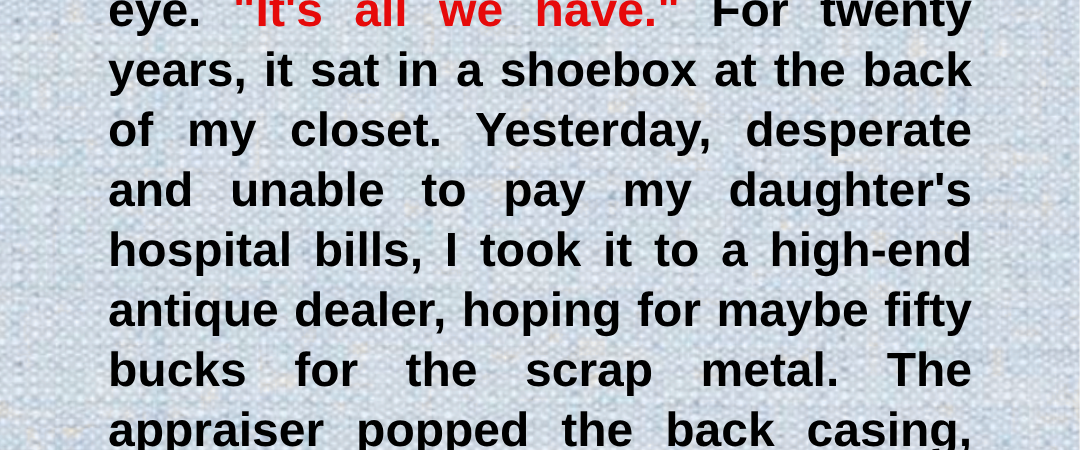 I stared at the appraiser, my pulse thudding so hard it felt like it was shaking my ribs. The small antique shop—normally quiet, filled with the comforting scent of old leather and polished wood—suddenly felt too tight, too warm, like the walls were slowly pressing inward.