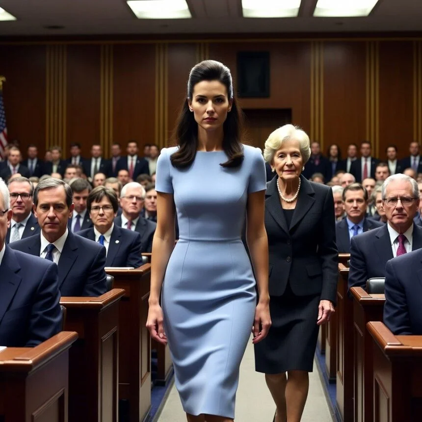 Before I could speak, the courtroom doors opened. The sound was barely audible, but the impact was immediate. A woman entered—tall, poised, her silver hair pulled back neatly.