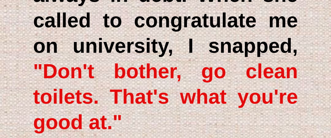 “Don’t bother,” I snapped. “Go clean toilets. That’s what you’re good at.”