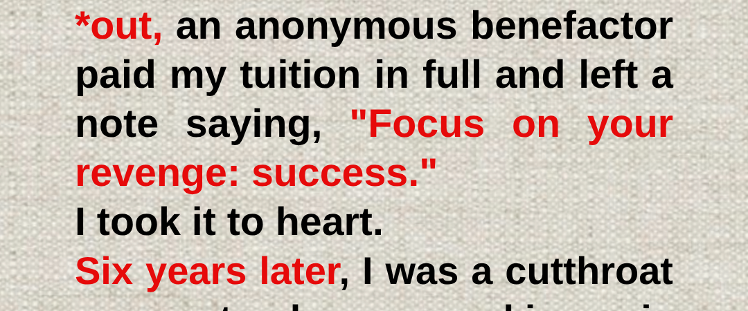 Silas offered a calm, predatory smile. He gestured toward a quiet balcony overlooking the city skyline, and my feet followed him on autopilot. My mind was racing back to that cramped dorm room six years ago, holding the cashier’s check that saved my life. Focus on your revenge: success.