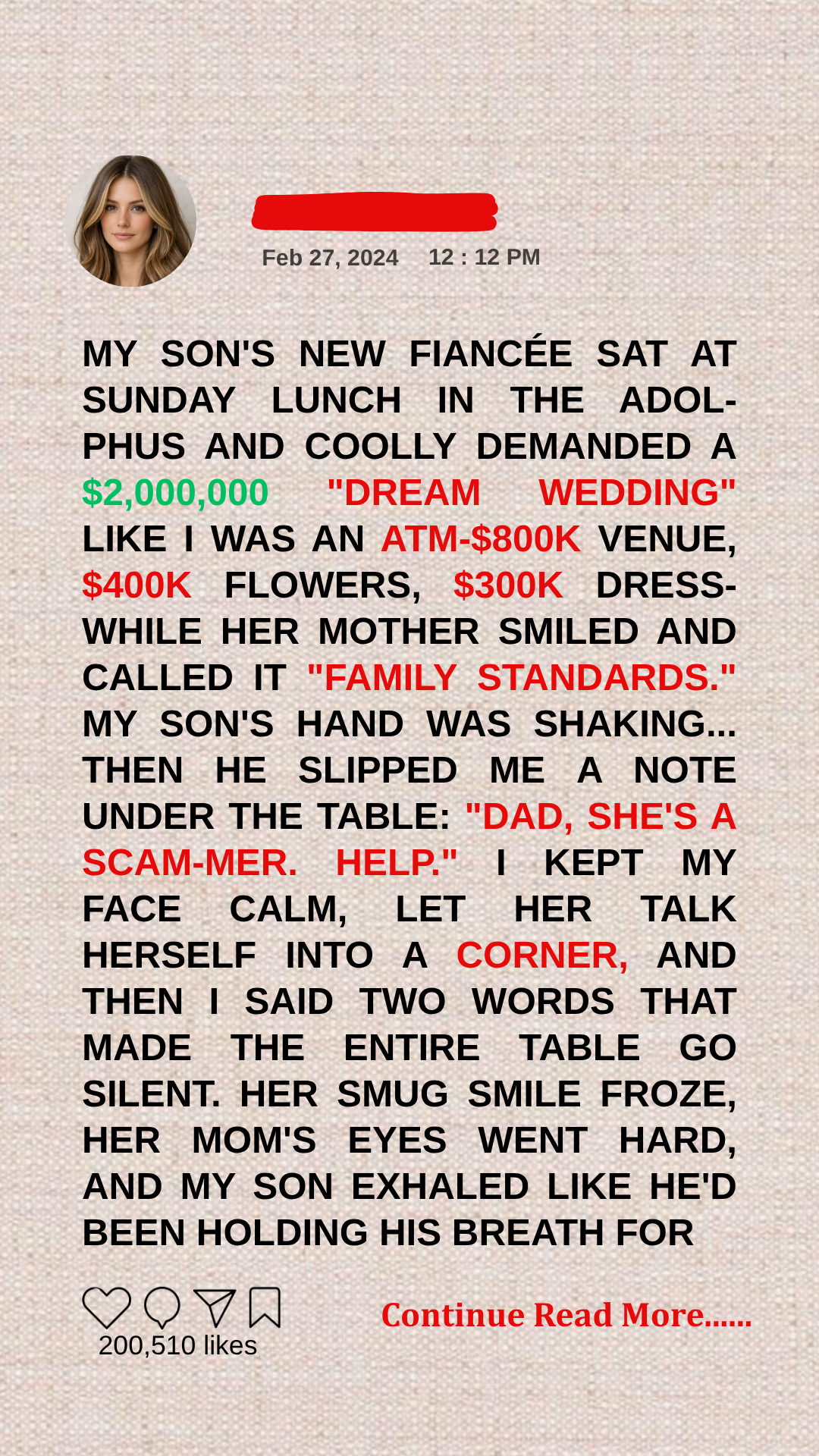 There it was: the threat disguised as tradition. Pay, or you don’t love your son. Pay, or you’re sabotaging his future. Pay, or you become the villain.