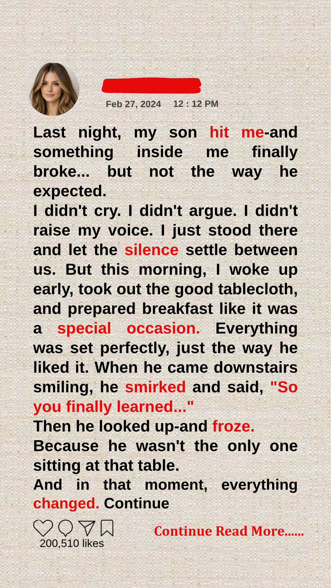 I just stood there, frozen in the silence, feeling two pains at once—the sharp heat on my skin and the deeper ache settling into my chest. That ache wasn’t from the slap alone. It was from the realization that something had broken between us, and it might never go back to the way it was.