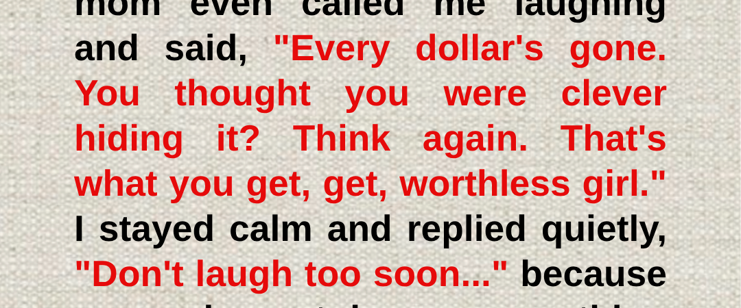“Are you sitting down?” she asked, already laughing. “Every dollar’s gone. You thought you were smart hiding it? Think again. That’s what you get, worthless girl.”