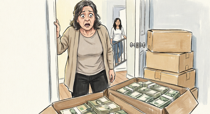 I opened the last room and my knees buckled. It was filled with stacks of boxes. Some were open, and inside were bundles of cash tied to the floor. I nodded, my hand trembling. I know he sends 8 million pesos every year. If there’s so much money here, where does it come from? Why is it hidden away in a locked room like a warehouse?