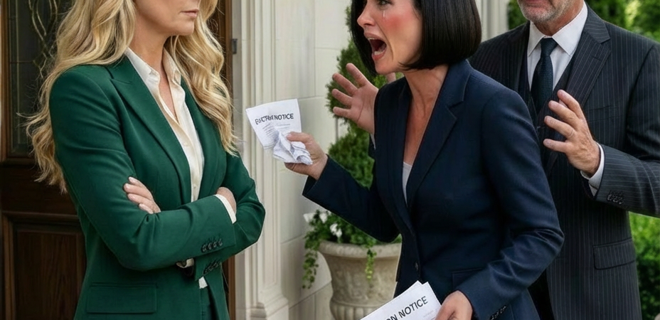 My ex-husband’s 26-year-old wife showed up at my doorstep with eviction documents and a self-satisfied smile, convinced my mansion now belonged to her father’s company. She had no idea I possessed the paperwork proving I owned not only the house but the entire development behind it. So I said nothing and allowed her little show to go on.