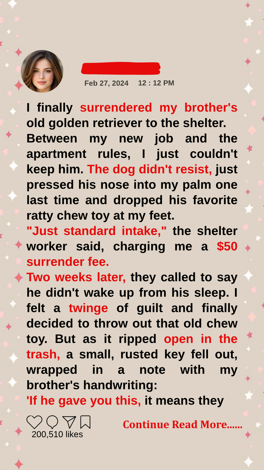 My apartment complex didn’t allow pets. I was barely holding myself together, barely sleeping, barely functioning. Every time I looked at the retriever, I felt like I was staring at Liam’s ghost.