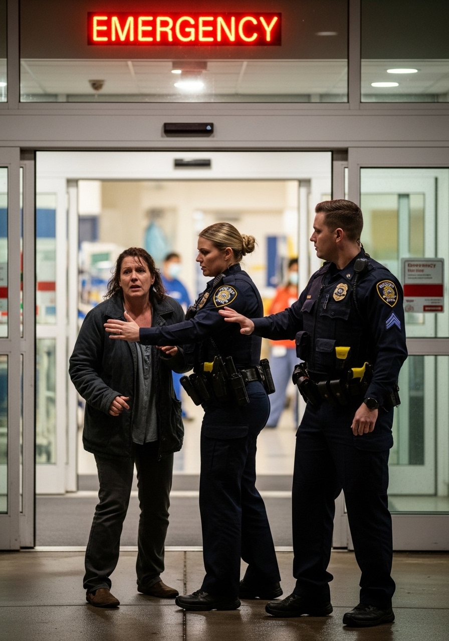 When the police officer said that, I stopped so suddenly my purse slid off my shoulder and hit my hip. The automatic doors behind me kept opening and closing with little sighing sounds, letting in gusts of humid summer air from the parking lot. Inside the hospital lobby, everything smelled like antiseptic, burnt coffee, and floor cleaner. A television mounted in the corner was showing a cooking segment with the sound off. Somewhere down the hall, a child was crying.