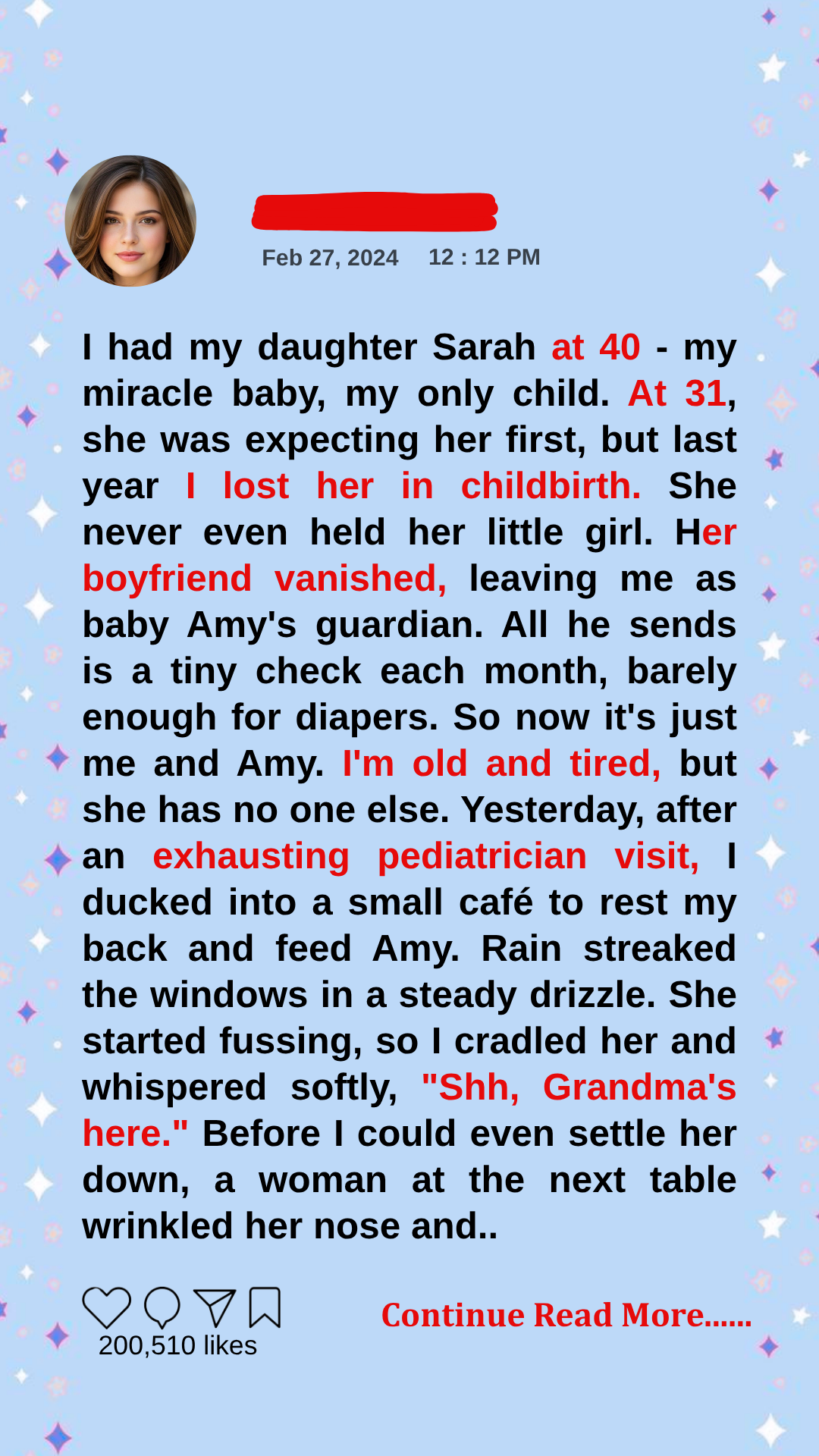 The word hit me like a slap. As if grief didn’t exist. As if seventy-two-year-old bones didn’t ache. As if I hadn’t already given my whole life to raising my daughter.