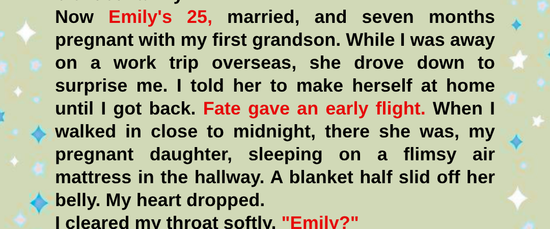 I knew it was a lie. That guest room was made up. The sheets were clean, the bed was perfectly arranged, and the crib sat in the corner. I had made sure everything was ready for Emily. And now she was here, pregnant and sore, sleeping on a hallway floor like an unwanted guest.