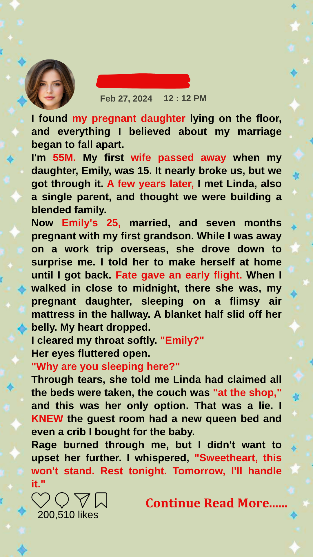 There, in the dim glow of the hallway light, lay Emily. My daughter. My seven-months pregnant daughter.
