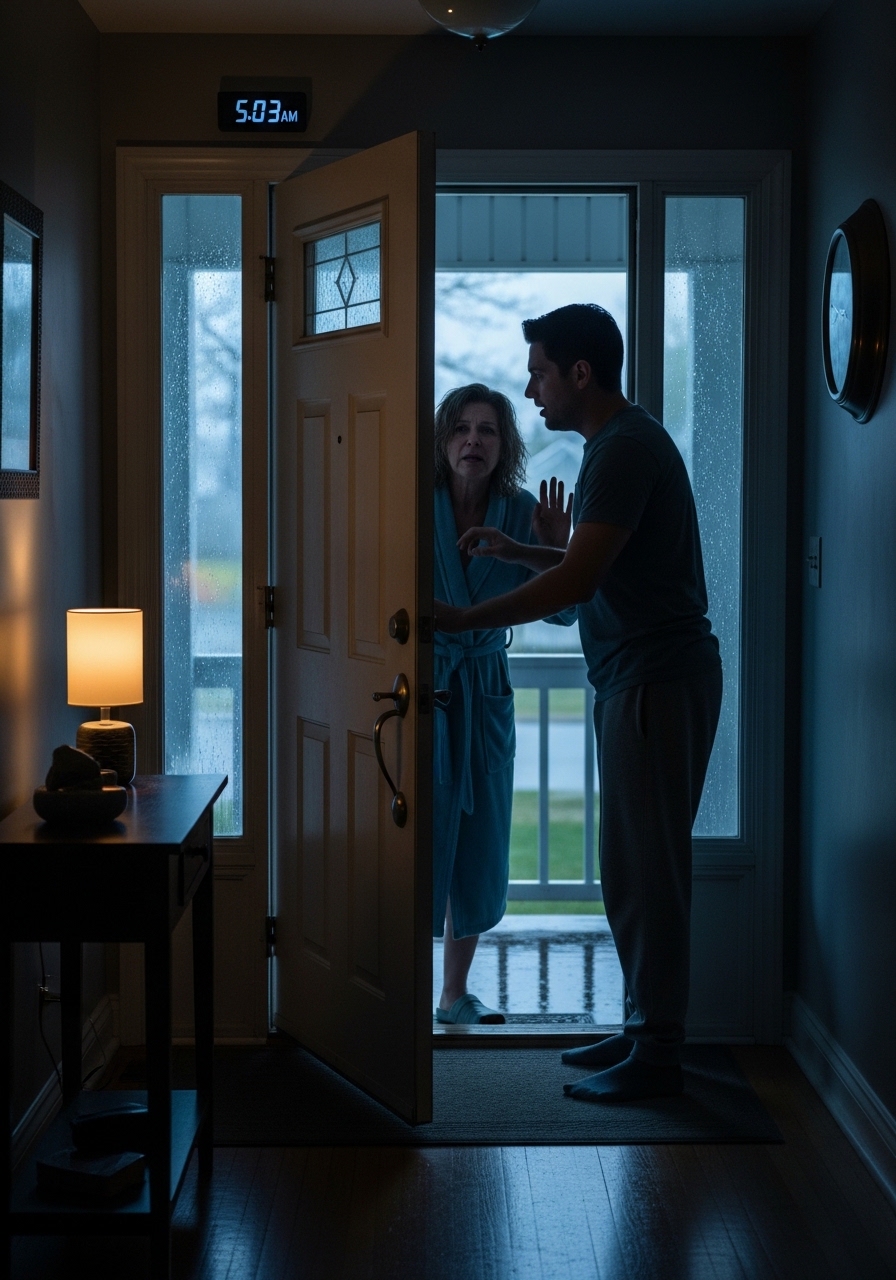 The sound tore through the house with a force that made my whole body jolt awake before my mind could catch up. I lay there for 1 disoriented second, listening. The clock on my nightstand glowed 5:02 in pale blue digits. The house was cold in the way old houses get just before dawn, when the walls seem to hold their breath. No one comes to your door at that hour unless something is wrong. Every instinct I had was already moving toward that conclusion before I even threw back the blankets.
