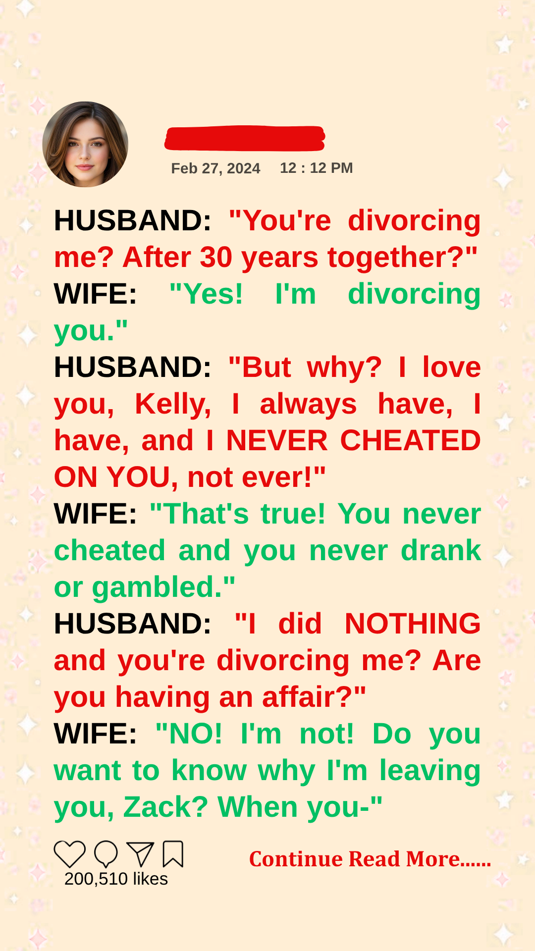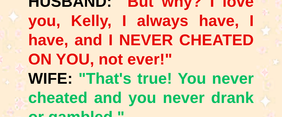 “But why?” he asked, eyes widening. “Kelly, I love you. I always have. I never cheated on you. Not ever.”